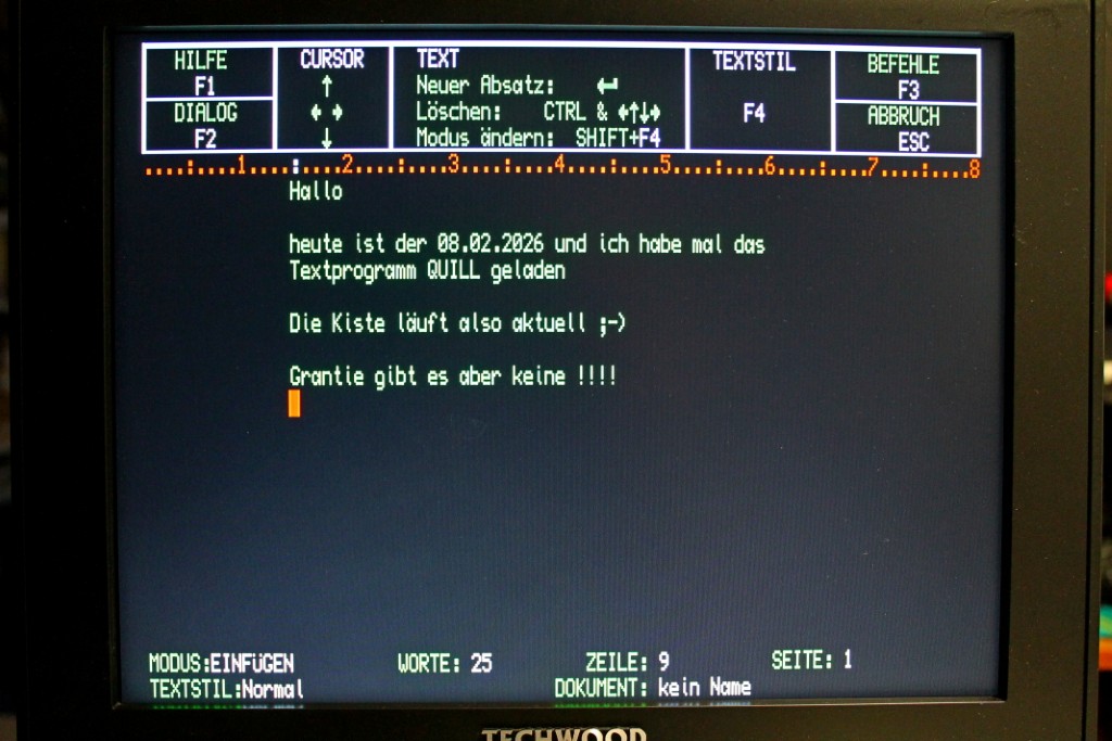 - neue Tastaturmembran - eine Reserve ULA ZX8301 und ZX8302 - eine Schachtel mit 20 Microdrives bei denen ich die kleine Filze ersetzt habe. Teilweise mit Software (funktionieren aber nicht mehr alle) - ein PCML Q+ Floppy-Disk Interface mit 256k DRAM Erweiterung (original) … DRAM ok, Floppy ungetestet - ein QubIDE Interface mit 512k DRAM Erweiterung und 128k DOM Modul (Neubau ohne Gehäuse) - ein QL-VGA Interface mit Pi Pico (ohne Gehäuse)… macht ein super Bild - ein Reserve Microdrive (Funktion unbekannt)