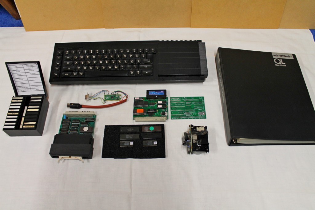 Ich fange heute mal mit einem Sinclair QL incl. diversem Zubehör an. (01) Sinclair QL (deutsche Version) incl. Netzteil, Handbuch (englisch) eingebaut sind Minerva 1.98 + TK 2.23 (anstelle der originalen ROMs) Die originalen ROMs sind natürlich dabei.